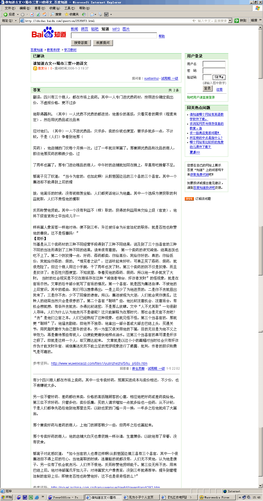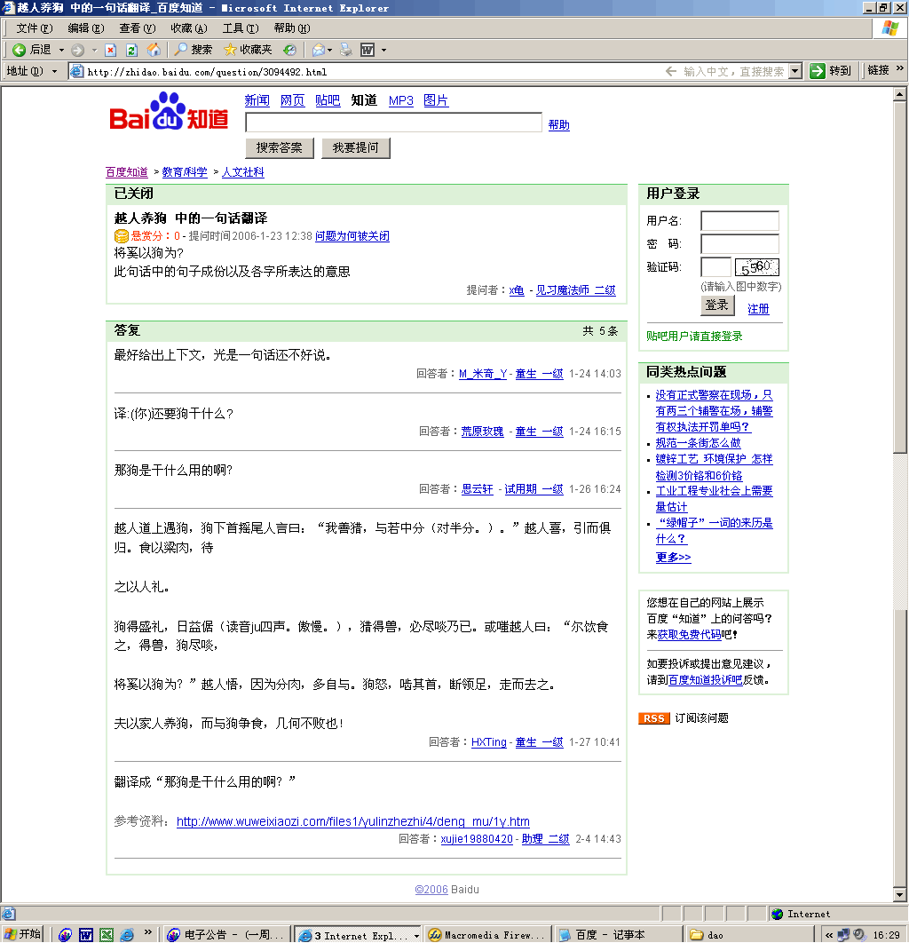 偶然的机会,发现“百度知道”的帖子中,有引用本人网站的内容,觉得很惊